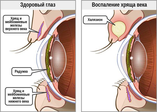 Халязион - хроническое воспаление мейбомиевой железы. В отличие от ячменя, располагается обычно дальше от края, в толще века. Признаки халязиона: