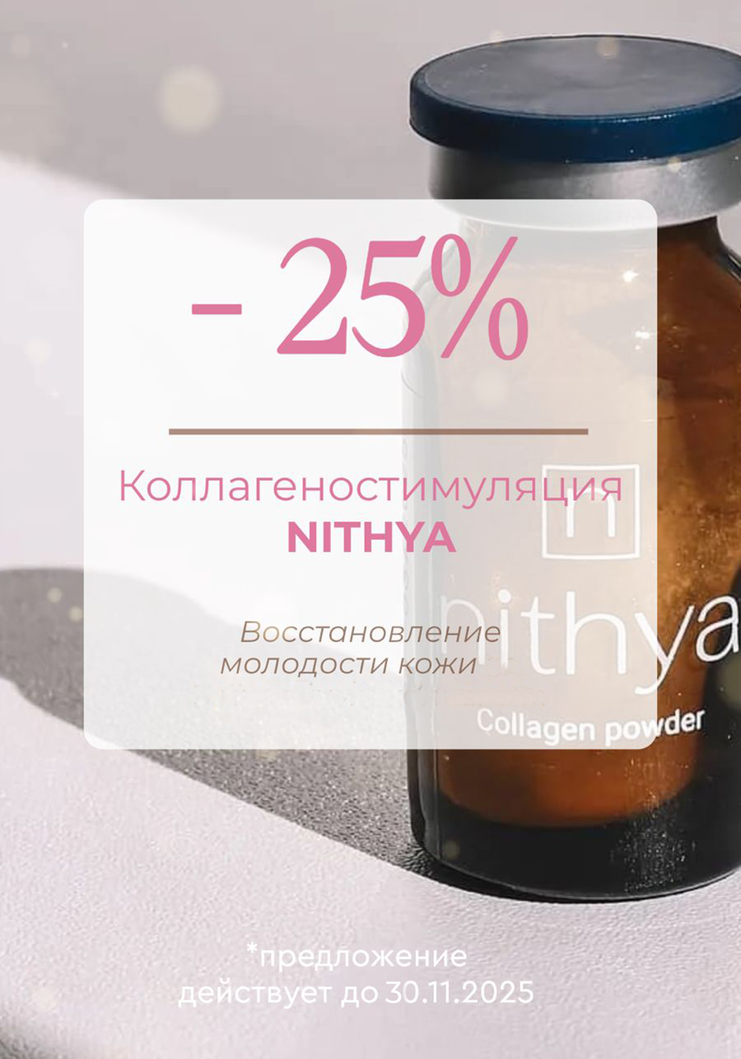 До 30 ноября действует скидка 25% на процедуры коллагеностимуляции Nithya.