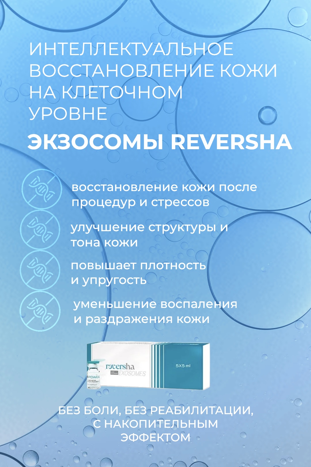 Молочные экзосомы Reversha — это мощный топический скинбустер, который усиливает результат и ускоряет восстановление после различных процедур. Инновационный косметический продукт из Италии создан для восстановления и ухода за кожей лица, шеи, зоны декольте, тела и кожи головы. Обладает успокаивающим, увлажняющим, осветляющим и антиоксидантным действием.